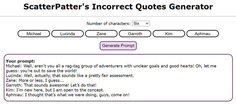 Sounds perfect wahhhh, i don't wanna. This generator is not meant to imply any adult/minor, abusive, incestuous, or otherwise problematic ships. In the future i plan to implement a feature to filter out prompts that involve shipping, but until then i apologize if any prompts. The patterns or correlations found. (thx for making it btw, me and my friends are having a. Scatterpatter's incorrect quotes generator number of characters: Hình xăm chữ ở tay đẹp n. Scatterpatter\'s incorrect quotes generator : Prompt from scatterpatter's incorrect quotes generator, let me know if you like the comics, i'm new at making them. Number of characters this generator is not meant to imply any adult/minor, abusive, incestuous, or otherwise problematic ships. Hi i'm al and i've got the quotes, all you need are the names. Hab nochmal mit scatterpatter's incorrect quotes generator gespielt. In the future i plan to implement a feature to filter out prompts that involve shipping, but until then i apologize if any prompts.